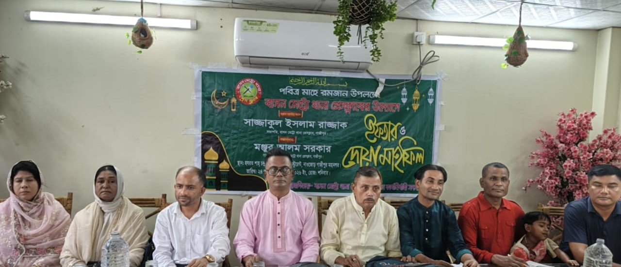 গাজীপুর মহানগরের বাসন মেট্রো থানা প্রেসক্লাবের উদ্যোগে শনিবার ১৪ ই মার্চ ২৪ রমজান ইফতার ও দোয়া মাহফিল অনুষ্ঠিত হলো। গাজীপুর সিটির নাওজোড় শাহ চন্দ্রপুরি রেস্টুরেন্টে এই ইফতার মাহফিল অনুষ্ঠিত হয় ।অনুষ্ঠানে সভাপতিত্ব করেন বাসন মেট্রো থানা প্রেসক্লাবের সভাপতি সাজ্জাকুল ইসলাম রাজ্জাক, সঞ্চালনা করেন মন্জুর আলম সরকার, সাধারণ সম্পাদক, ও মেহেদি হাসান, সাংগঠনিক সম্পাদক । সম্মানিত অতিথি হিসেবে উপস্থিত ছিলেন কে এম আবুল হোসেন, প্রতিষ্ঠাতা সভাপতি, বাংলাদেশ সাংবাদিক নির্যাতন প্রতিরোধ ফোরাম । মোঃ রাসেল খান ,কার্যকরি পরিষদ সদস্য, বাংলাদেশ সাংবাদিক নির্যাতন প্রতিরোধ ফোরাম , মোঃ কলিমুল্লাহ, সাধারণ সম্পাদক,টংগী সাংবাদিক ক্লাব, সাইফুল ইসলাম মানিক, সিনিয়র রিপোর্টার, বাংলাদেশ সমাচার ও উপদেষ্টা, গাজীপুর জেলা প্রেসক্লাব। ১৩,১৪,ও ১৫ নং ওয়ার্ড মহিলা কাউন্সিলর জুলেখা আক্তার, গাজীপুর মহানগর। মোঃ হামজা আলী, বিশিষ্ট ব্যবসায়ী ও সমাজসেবক, বাসন, ইব্রাহীম তালুকদার, বিশিষ্ট ব্যবসায়ী ও সমাজসেবক, বোর্ডবাজার, ইউসুফ আলী, বিশিষ্ট ব্যবসায়ী ও সমাজসেবক, বাসন, রিপন মাস্টার, বিশিষ্ট ব্যবসায়ী ও সমাজসেবক, বাসন সহ গন্যমান্য ব্যক্তিবর্গ।আরো উপস্থিত ছিলেন শফিকুল ইসলাম সাজু , সহ সভাপতি বাসন মেট্রো থানা প্রেসক্লাব , সজীব হোসেন সহ-সভাপতি, জোবায়ের হোসেন ইফতি সহ সাধারণ সম্পাদক, মোজাম্মেল হোসেন সহ সাধারণ সম্পাদক, রফিক হোসেন প্রচার সম্পাদক, আফনান মামুন চৌধুরী সমাজকল্যাণ সম্পাদক, রবিউল ইসলাম কার্যকরী সদস্য, মোতালেব হোসেন কার্যকরী সদস্য, মাহমুদা আক্তার লিসা যুগ্ম সাধারণ সম্পাদক, টিটু সরকার কার্যকরী সদস্য, ফাতেমা আক্তার দপ্তর সম্পাদক, সালমা বানু শালিনি কার্যকরী সদস্য, বেলাল হোসেন, টুটুল তালুকদার, আলামিন, আমিরুল সহ বাসন মেট্রো থানা প্রেসক্লাবের সাংবাদিকবৃন্দ। অনুষ্ঠানে বক্তারা সাংবাদিকদের পেশাগত দায়িত্ব পালনে সাংবাদিক নির্যাতন,সমস্যা ও স্বার্থ সংশ্লিষ্ট বিষয় ও সমাজ ও রাষ্ট্রের প্রতি ভুমিকা পালন ও আত্মত্যাগ সংশ্লিষ্ট বিষয়ে আলোচনা করেন। বিশেষ দোয়া ও মোনাজাত শেষে ইফতার করার মধ্য দিয়ে অনুষ্ঠান সম্পন্ন হয়েছে।